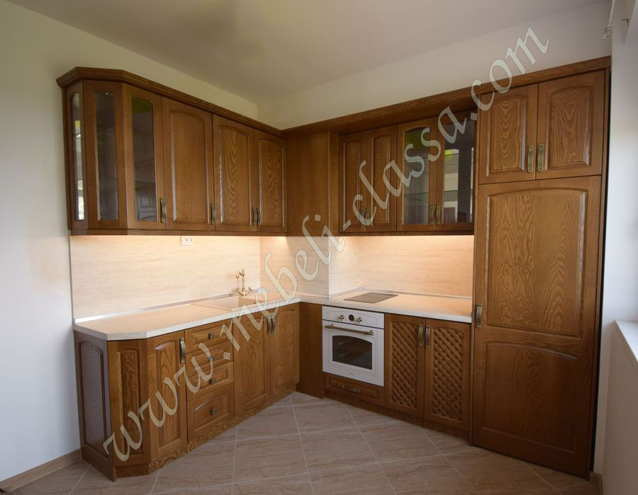Кухня от масив ясен в класически стил под...