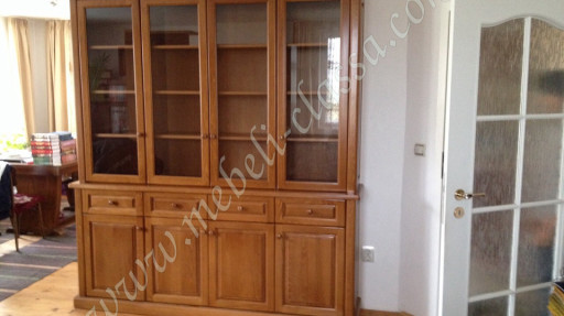 05Sun Четворен витринен шкаф Витринен шкаф от масив бук с четири секции, подходящ за хол и трапезария.
